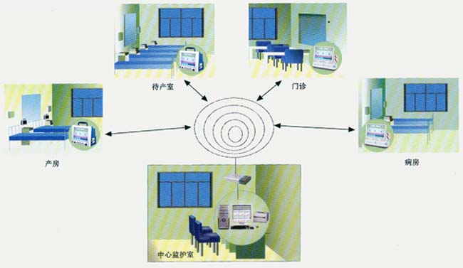 無線中央監(jiān)護(hù)系統(tǒng)示意圖