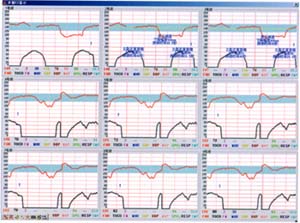 可以同屏顯示長達(dá)一小時的監(jiān)護(hù)信息,對監(jiān)護(hù)信息縱覽無疑,對整個監(jiān)護(hù)信息的觀察分析診斷極為方便。
