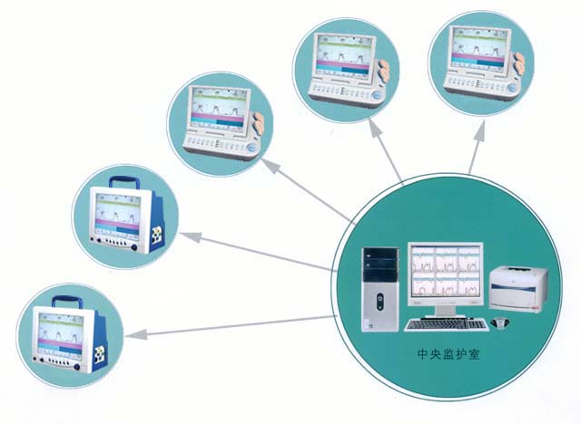產(chǎn)科多床位電腦母嬰中央監(jiān)護(hù)以中央監(jiān)護(hù)工作站為核心,將分布在產(chǎn)房、待產(chǎn)室、監(jiān)護(hù)室、門診、病房的胎兒監(jiān)護(hù)儀,通過獨(dú)特的網(wǎng)絡(luò)技術(shù)進(jìn)行聯(lián)網(wǎng),實(shí)現(xiàn)多床位信息集中管理、資源共享和全產(chǎn)程監(jiān)護(hù),真正體現(xiàn)胎兒監(jiān)護(hù)的臨床價值和意義,通過聯(lián)網(wǎng)擴(kuò)展了單機(jī)胎兒監(jiān)護(hù)儀的功能,大大提高了產(chǎn)科的工作效率和工作質(zhì)量。